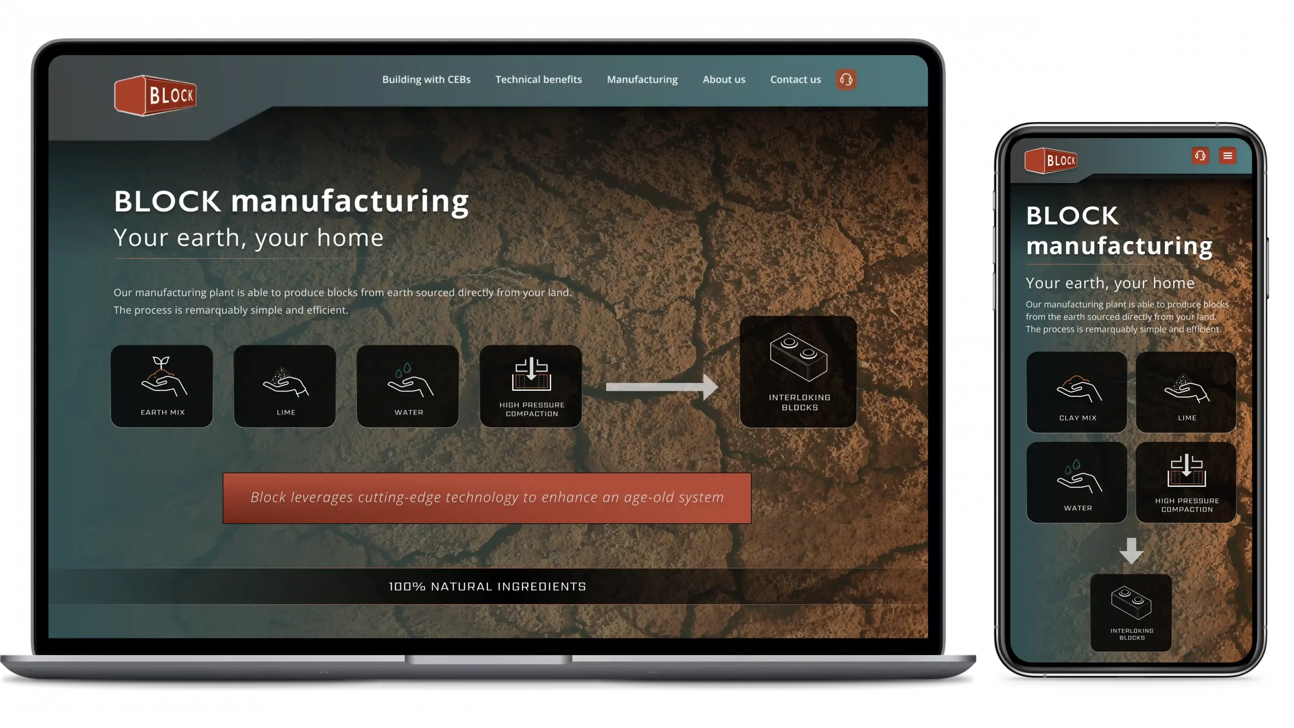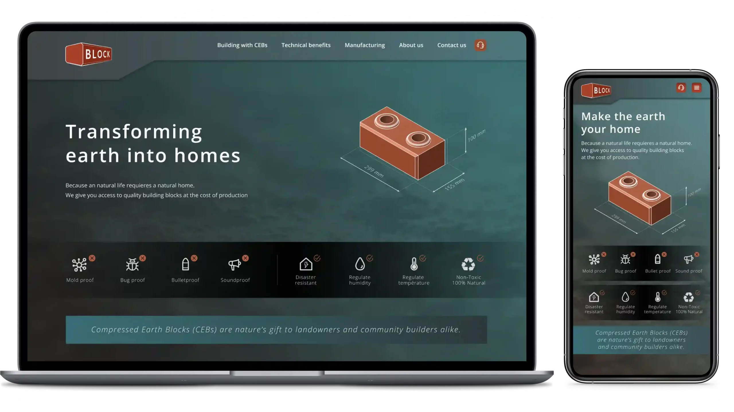 Création d’un site web vitrine pour la société Block qui propose une alternative au béton pour la construction de bâtiments afin de réduire l’impact écologique à différents niveaux.