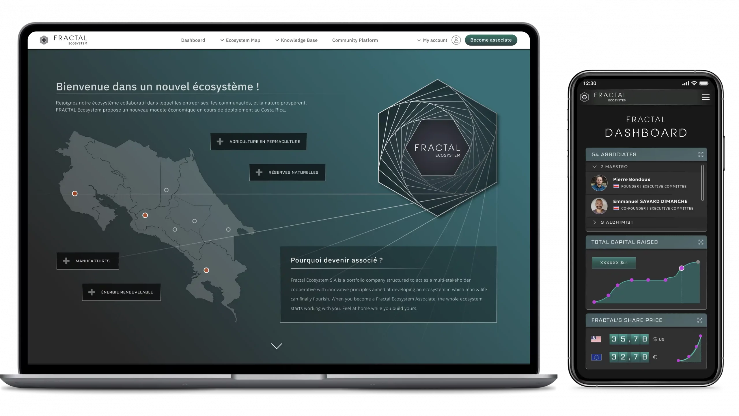 Design du site web qui centralise et présente l’ensemble de l’organisme et donne aux actionnaires et aux entreprises les outils (ex : Dashboard, carte intéractive, etc.) pour permettre un contrôle et une gestion financière collaborative et transparente.