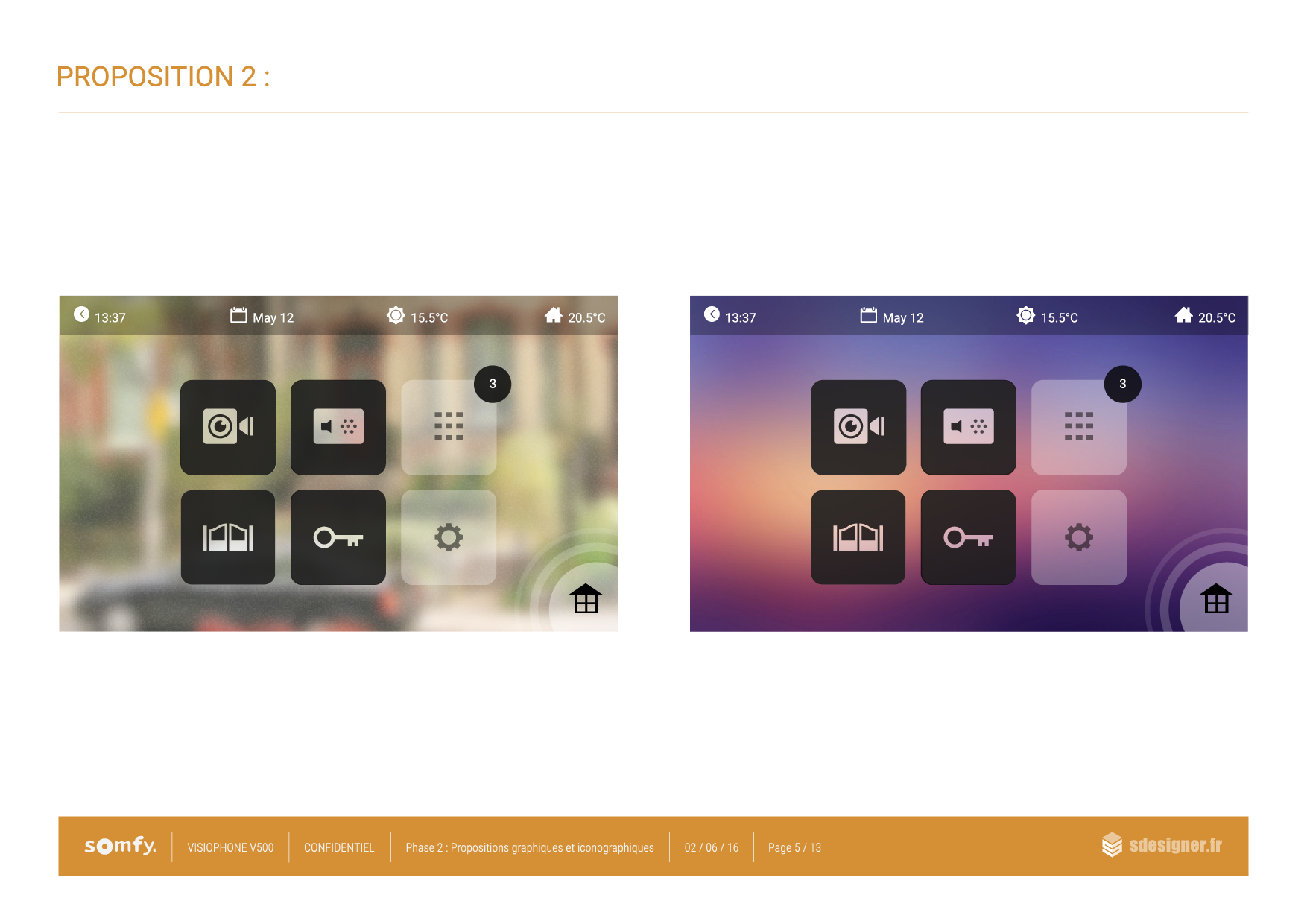 Avec son interface tactile personnalisable, le portier vidéo V500 de Somfy est intuitif et agréable à utiliser. Au delà de ses fonctions poussées de visiophone (pilotage caméra, micro, portail, portillon, etc.), sa commande sans fil intégrée permet aussi de piloter très simplement d’autres produits de la maison.